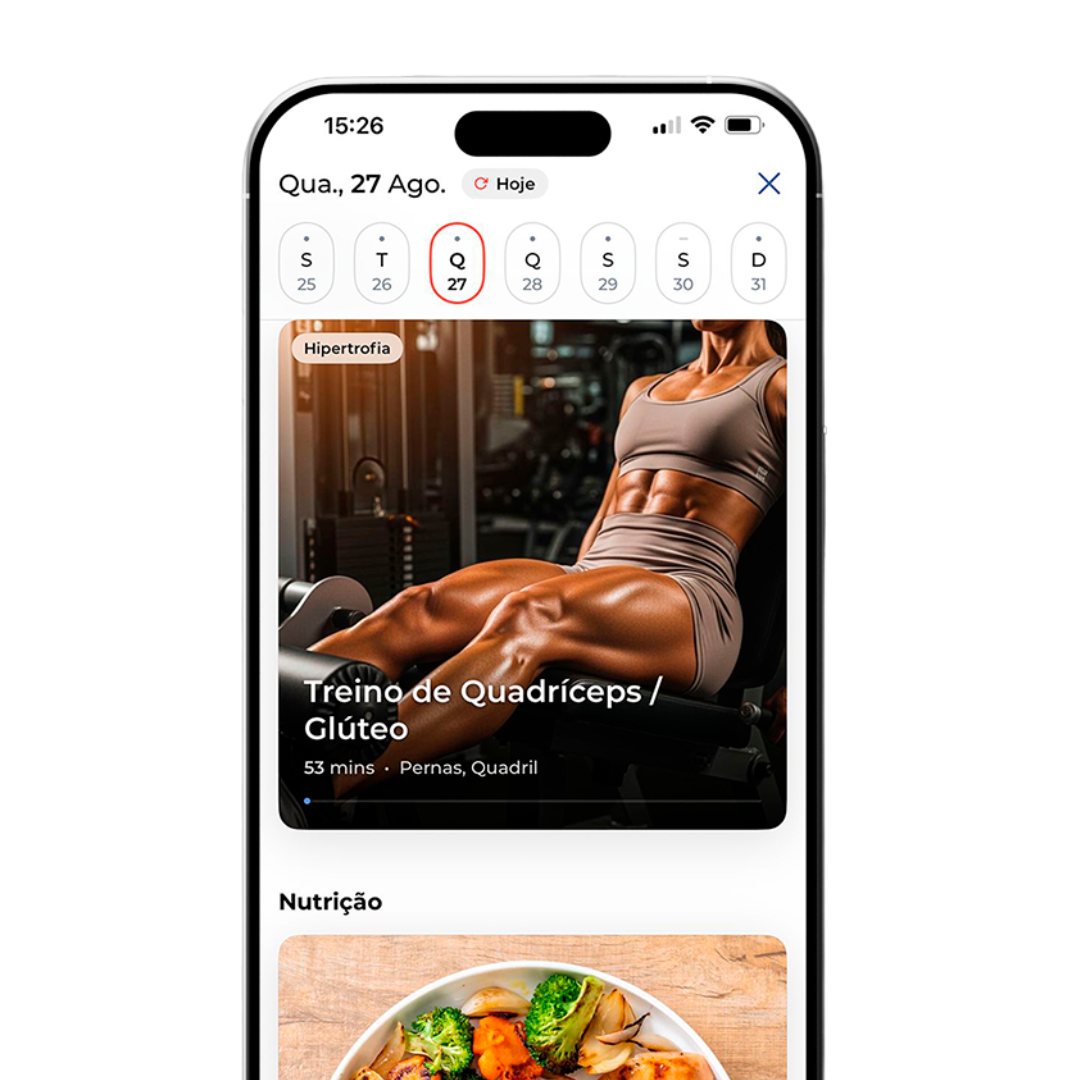 Seu plano em um só lugar: treinos, nutrição e progresso